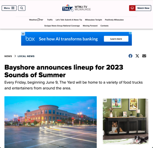 Each year Bayshore benefits from millions of media impressions, an engaged and growing social media following, hundreds of thousands of website clicks and a virtutal parade of shoppers, diners and community members on site to enjoy this thriving community center.