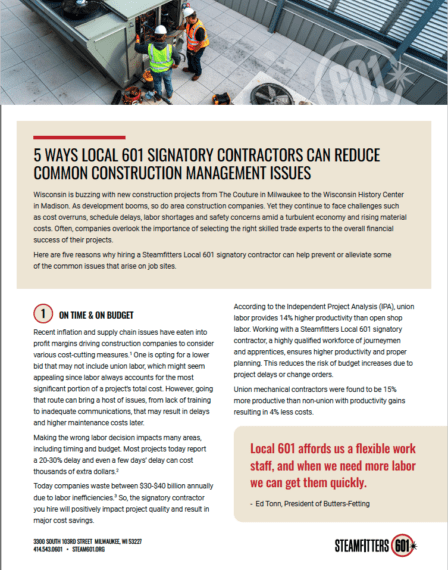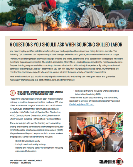 - Promote to construction companies the benefits of working with the union’s signatory mechanical contractors.