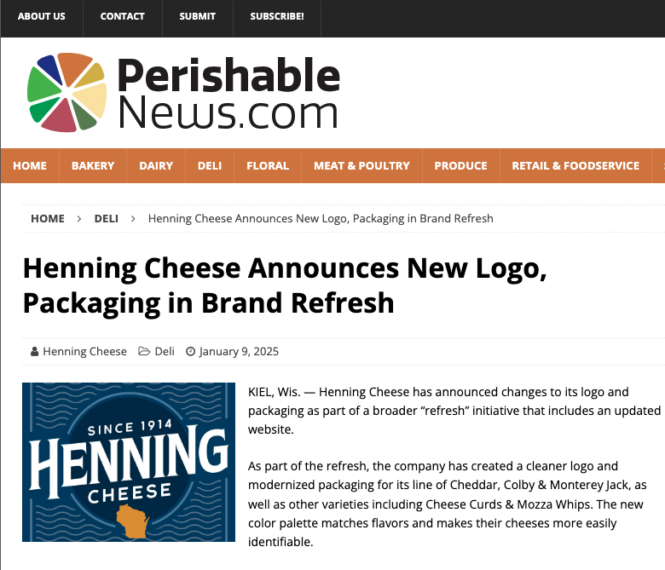 For over four generations, Henning Cheese Company has consistently produced the finest award-winning cheddar cheese in the world. They are a small, family-run operation in Kiel, Wisconsin with ties to local dairy farms. When it was time to upgrade their logo, packaging, website and messaging, they turned to STIR.